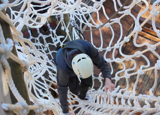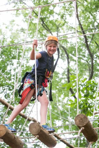 Asheville Treetops Adventure Park For ages 4 and over, we have 7 aerial trails with 77 elements from ground level to 50 feet in the air. For those old enough, choose which trails you want to conquer and have fun challenging your friends or family on our sky-kayak or hang glider, cheese wall or slide to nowhere, sea-turtle swing, or AERIAL snowboard.