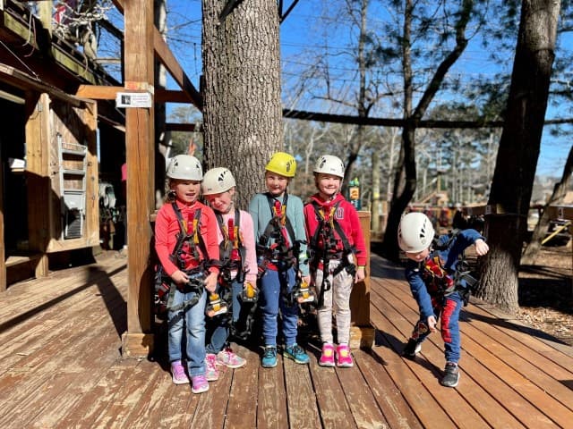 Group Adventures in the Trees (Zipping or Climbing the Treetops Park) or on the ground (team building or mountain bike riding) are great ways to connect with co-workers, students, friends, bachelor/bachelorette groups, associations, scouts, homeschool and youth groups. Groups can book all year long for an awesome team bonding experience.Â