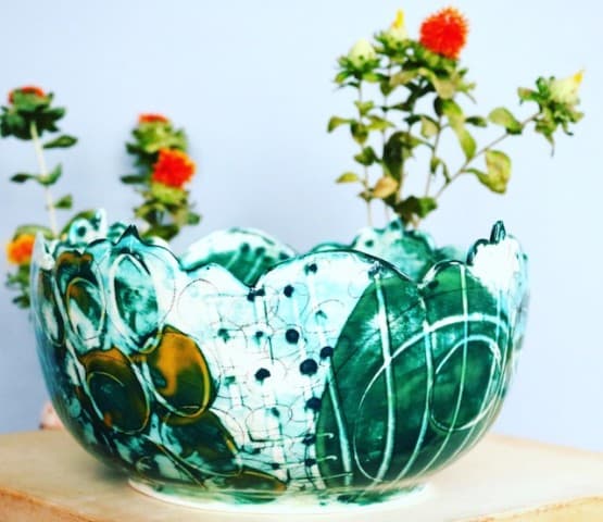 Angelique Tassistro, an iconic Asheville potter who is known for her playful ceramic dinnerware and for making splashes by inventing a signature process and style all her own!