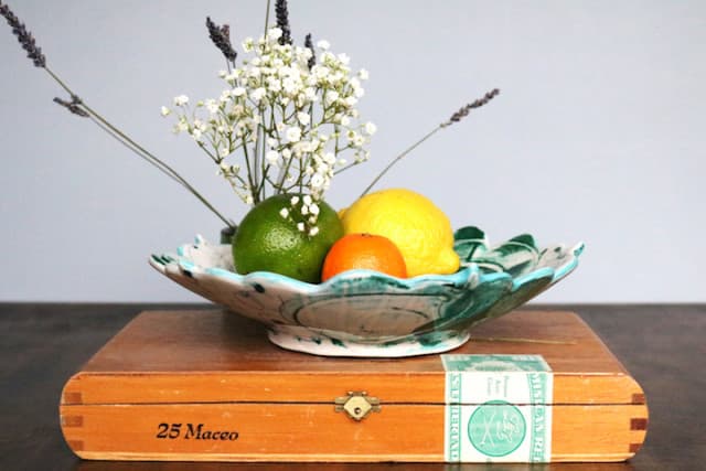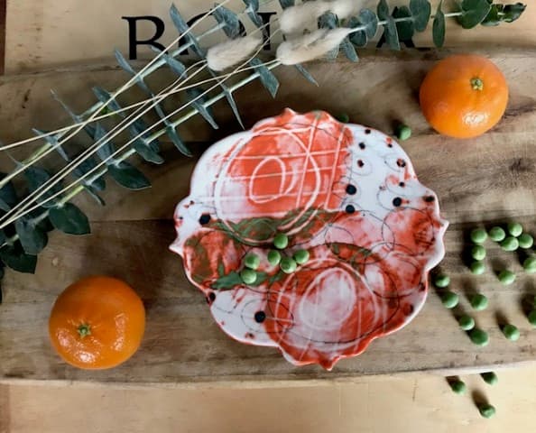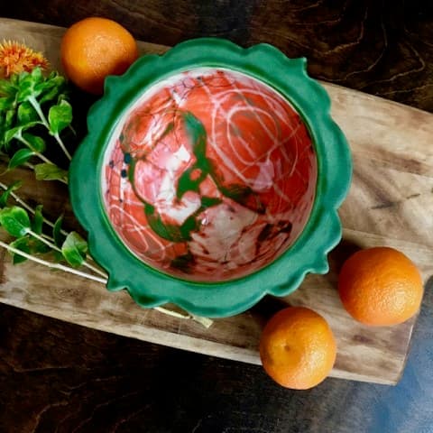 That signature process, known in the pottery world as “layered underglaze,” produces a rich and colorful aesthetic on the surface of her handmade pottery that makes each dish, tumbler, and bowl an incredibly unique piece. And while each handmade ceramic dish crafted by Angelique is a work of art, they’re also functional, perfectly suited for everyday use in the kitchen and on the dining table!