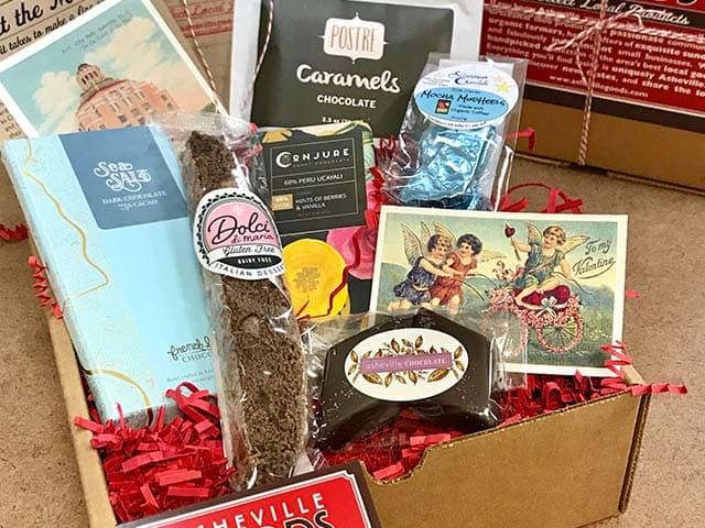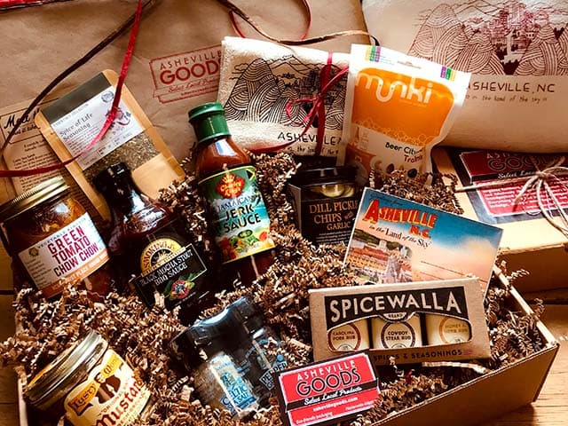 - If you know Asheville, you know it's home to small-batch artisanal food producers, a passionate community of organic farmers, hand-crafters of exquisite sundries, and fabulously independent small businesses. Asheville Goods handpicks a selection of the area's best products from artisanal food producers and packages them in handsome eco-friendly gift boxes. The perfect way to say, "welcome to town," "thanks," or "wish you were here!" Choose from our curated selections or customize a box for your occasion. Great for conferences and events, including weddings. Local delivery and pickup available. We ship nationwide. Shop online at www.ashevillegoods.com or call us at 828-252-9175.