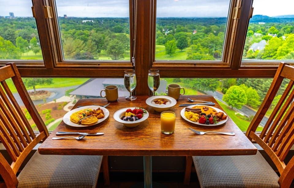 • The Blue Ridge is a farm-to-table artisanal buffet overlooking the majestic Blue Ridge Mountains. The Morning Table signature buffet, served each morning, will redefine all that you imagined breakfast could be. Two massive rooms are filled with amazing breakfast options, including a yogurt bar, omelet station and great gluten free options. Don’t miss the award-winning Friday night Seafood Buffet, Saturday night Prime Rib Buffet and phenomenal Sunday Brunch. It’s the perfect way to end any week.