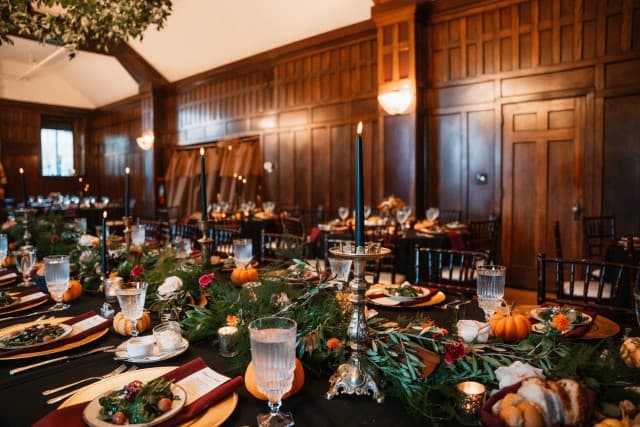 Located just north of downtown, this 1920s-era manor features Appalachian stone fireplaces and original mahogany and cherry walls, with a beautiful 1500-foot Great Room lit with wrought-iron chandeliers and alabaster sconces for dining and dancing. The adjacent library hosts the bar and cocktail hour. Outdoors, a beautiful garden site adjoins the building for wedding ceremonies.