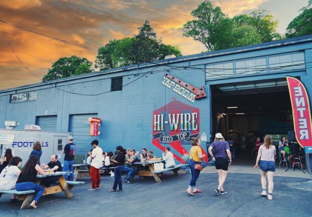 Located a half a mile from the Biltmore Estate and just up the road from both Hi-Wire Brewing's RAD Beer Garden and their original location turned Specialty Brewery & Taproom on Asheville’s South Slope, Hi-Wire’s 27,000 sq. ft. Biltmore Village Production Brewery & Taproom brings the brewing process to life by giving craft beer drinkers the opportunity to enjoy unique but approachable lagers and ales beside the tanks where they were crafted. This vibrant, mural-covered taproom features over 20 taps of Hi-Wire beers alongside cocktails and more, a large shaded patio, arcade games, a permanent food truck by Guajiro Cuban Comfort Food, plus two unique private events spaces – and free parking too.