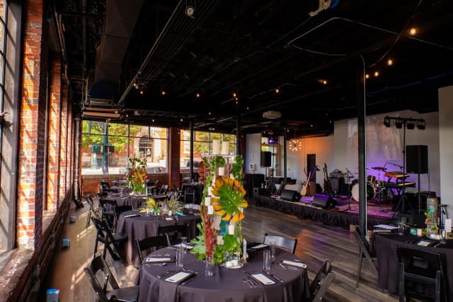 • Located in the heart of downtown Asheville, The Social Hall is housed in the 100-year-old Minico Building, with 3000 square feet of event space. Our all-indoor space features gorgeous floor-to-ceiling wrap-around windows on the corner of Broadway + Woodfin. It's a light, bright, airy room that's the perfect blank canvas for any party! A little industrial. A little bit cheeky. All Asheville.
