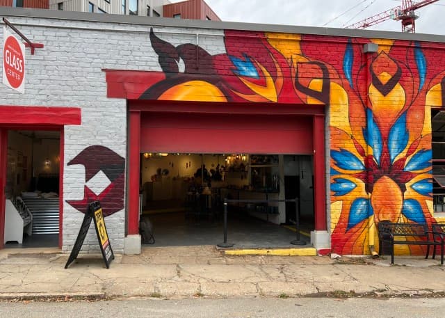 The North Carolina Glass Center is a nonprofit public access facility dedicated to education, exploration, and collaboration in all forms of glass. Our building contains a gallery, exhibit space, hot shop, flame shop and cold shop. We have over 60 artists that work and sell out of our space.