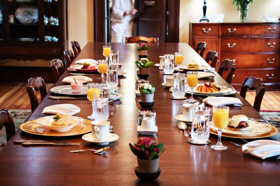 What truly sets Reynolds Mansion apart is its gourmet four-course breakfast. Each morning, guests are treated to a culinary delight, meticulously prepared by owner and chef Paul Manshon. This breakfast is more than just a meal—it’s an experience, where every course is designed to be as beautiful as it is delicious. Whether dining in the elegant Grand Dining Room or sipping morning coffee on the porch with stunning mountain views, the experience is unforgettable.