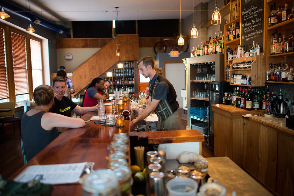 • The award-winning Top of the Monk has been recognized as one of the finest cocktail bars in the southeast. Enter through the elevator door on Patton Ave., and proceed up the stairs to this cozy bar with a speakeasy feel. Enjoy expertly mixed classic cocktails while sitting on the roof-deck patio and enjoying views of the mountains.