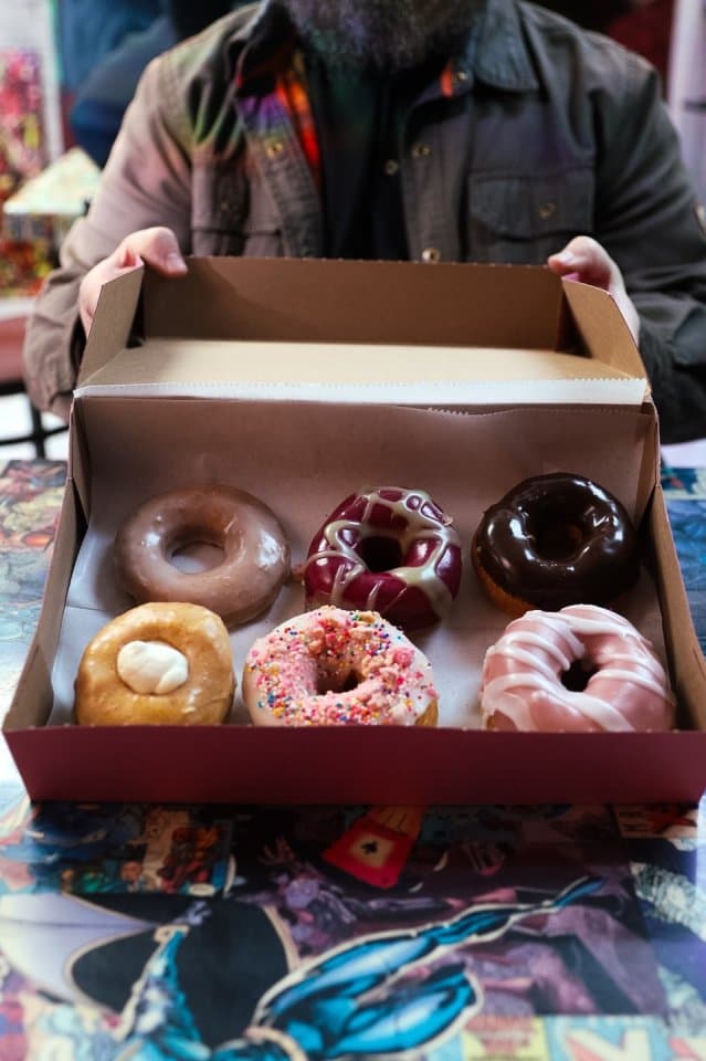 • Delicious French Broad Chocolate icing. Savory Chop Shop Butchery smoked bacon. Malty caramel sauce made with beer brewed just next door. The Orange Peel. The Moonswine. The Rotating Tap. Whether you’re local to Asheville or a visitor looking for a taste of our fine city, you’ll love our delicious and fun Vortex Doughnuts—Tasty ∙ Local ∙Twisted.