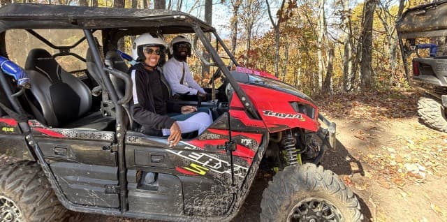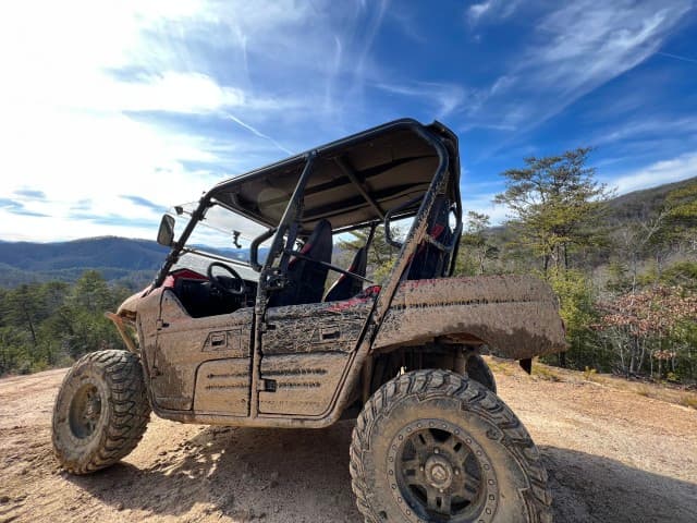 Asheville’s Ultimate Off-Road Adventure! Drive or Ride our Guided Tours in 4-person Off-Road Vehicles on 220 acres of scenic mountain trails climbing up 1,400 feet on Adventure Mountain in Barnardsville, NC (just 20 minutes from Downtown Asheville.) With an elevation of 4,200 feet at the peak, Adventure Mountain off-road trails travel through hardwood forests and extreme mountain terrain. Start with a training area to develop your off-road skills, then follow our guide for hours of fun on narrow trails, rock and log obstacles, hill climbs, and spectacular views of some of the highest mountains in the Eastern US.