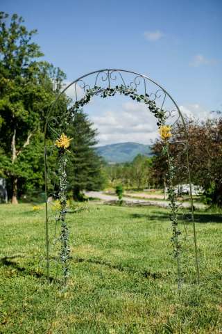 Whether your special day involves up to 350 guests or is a simple elopement in the meadow, the farm offers 4 outdoor scenic spaces plus a large open-air barn for both ceremony and reception options. The big barn is outfitted with a stage and dance floor space, intimate overhead lighting, and some of the most gorgeous views of the Blue Ridge Mountains.