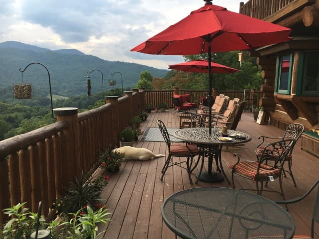 Nestled in the mountains, 15 miles from downtown Asheville, Wildberry Lodge is the perfect mountain retreat. Seven beautiful log guest suites with Jacuzzi's, luxury linens/robes and spa bath products await you. A 4 course breakfast is served each morning including fresh organic produce from local farms whenever possible. A hiking trail and a unique forest retreat with stone fire pit and relaxing patio furniture are available on the property. Come and enjoy the spectacular mountain views, sunsets and starlit nights. The innkeepers of Wildberry Lodge invite you to relax and renew in the splendor of the mountains.