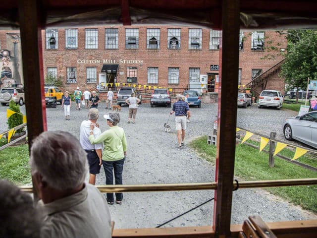 Getting to and around in The River Arts District is a breeze. Accessible by car from Downtown, West Asheville, and Biltmore Village, there is plenty of free parking. During Second Saturday Art Stroll, park once and hop on and off of the free ArtsAVL trolley at any of the stops listed on the map.