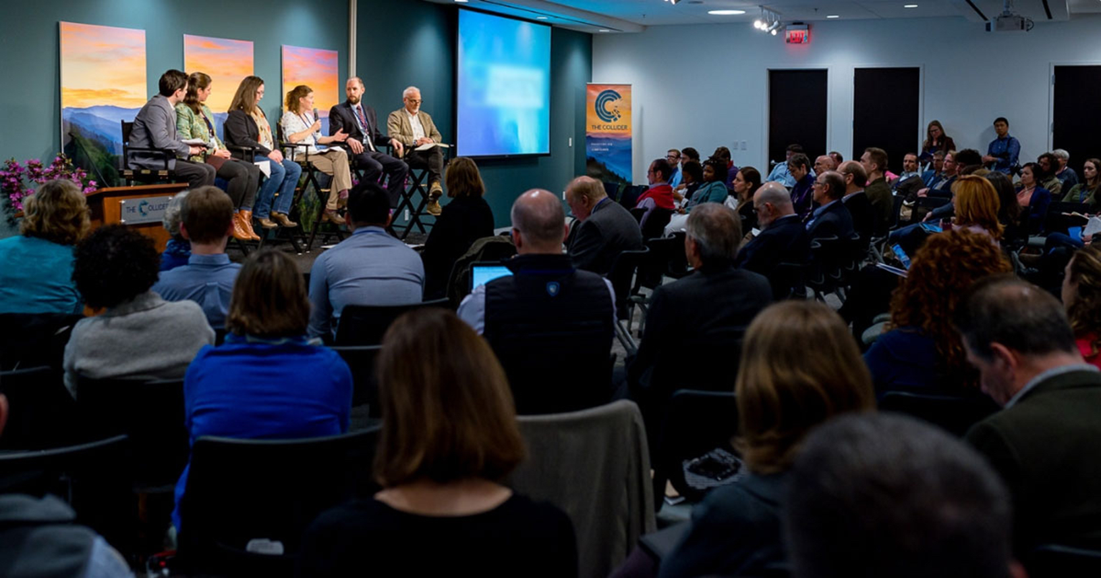 A project of the Asheville-Buncombe Sustainable Community Initiatives, the Collider is a state-of-the-art business and conference facility in downtown, which hosts primarily mid-week corporate events and leverages growing demand for expertise from the nearby National Climatic Data Center. The 6,000 square foot, flexible meeting space includes a theater, breakout rooms, pre-function lounge area, and an advanced technology infrastructure to support a data center and modern research facility.