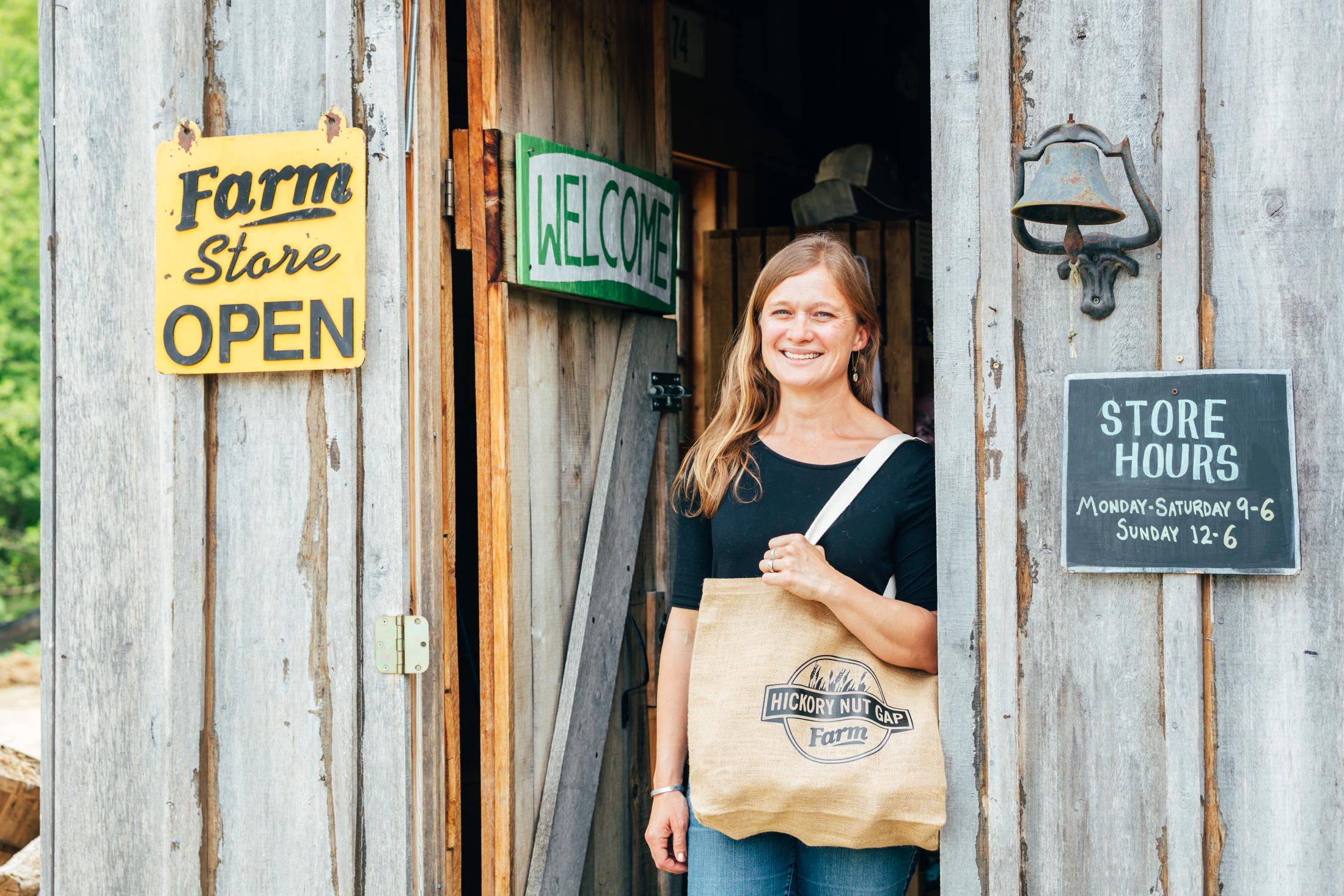 Standing on the crest of the hill at Hickory Nut Gap Farm is like stepping into a vintage postcard. Old barns dot the land's gently rolling pastures that cradle herds of grass-fed cattle, pastured pigs, and free-range laying hens. Families gather in the picnic area and children hold newborn chicks in the palms of their hands.