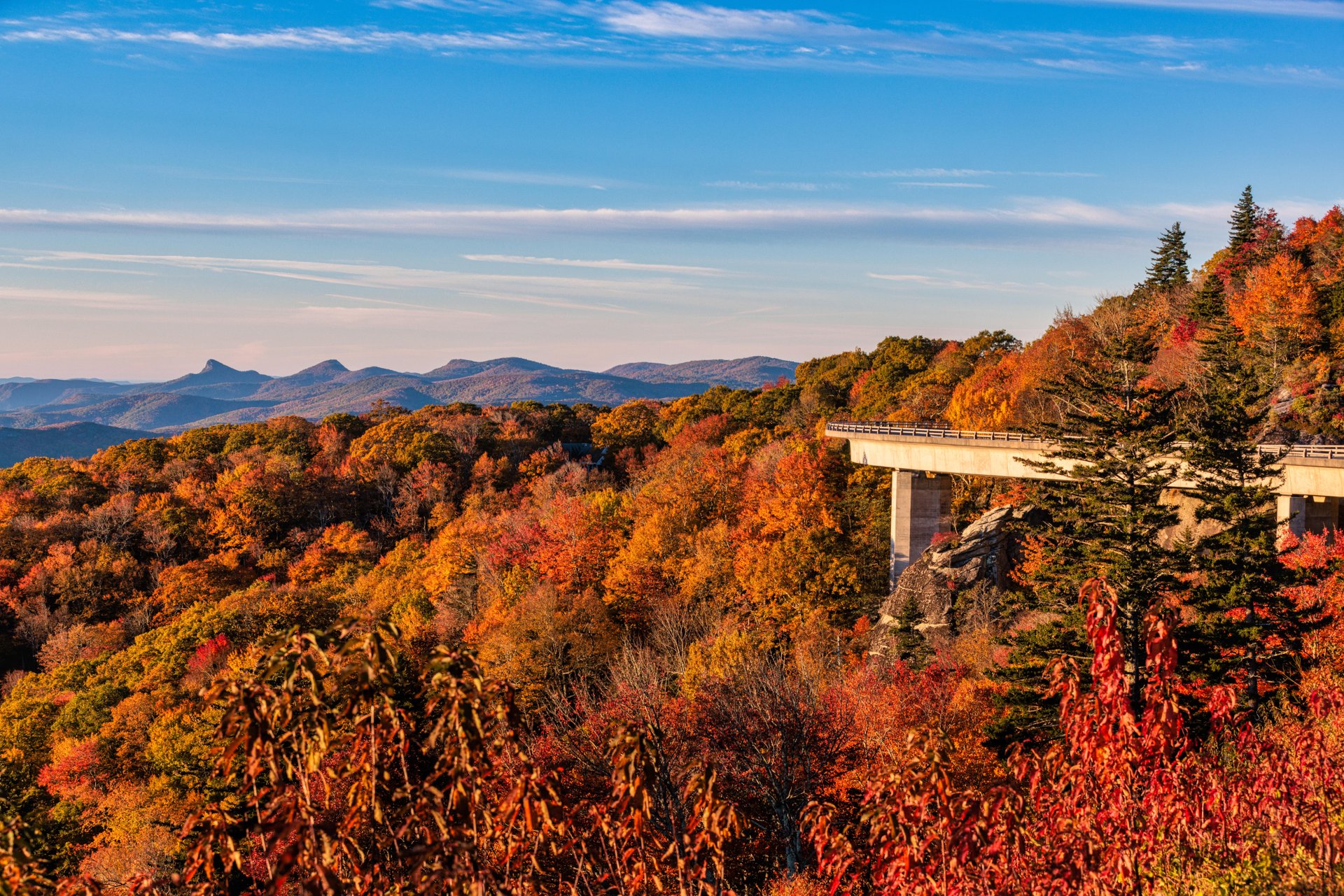 The Blue Ridge Parkway is one of the most popular vantage points to view fall color, which experts predict will be particularly vibrant and long-lasting this year. With more than 100 tree species spanning 5,000 feet of elevation, the Blue Ridge Mountains are home to one of the longest fall color seasons in the world.