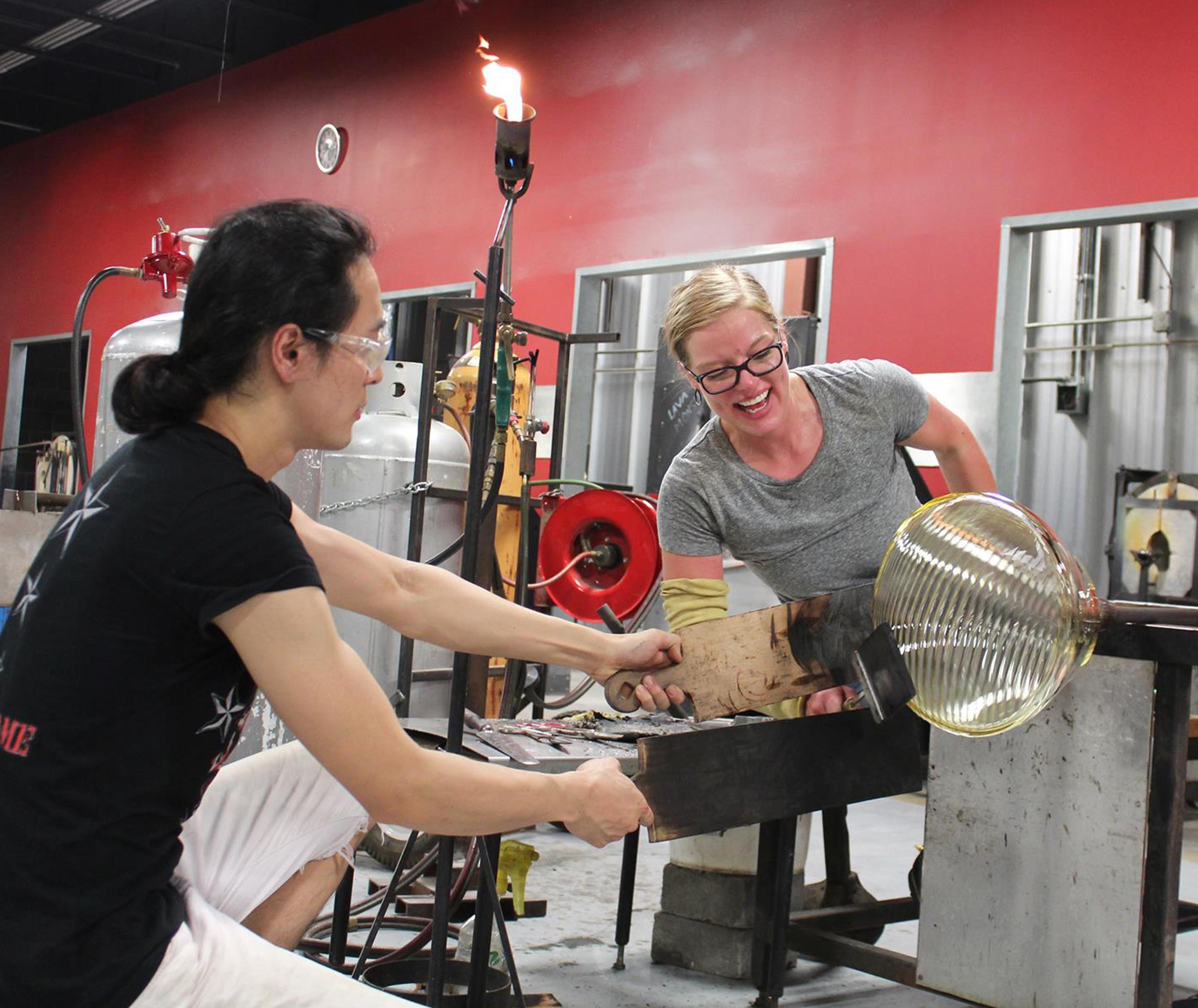 While Asheville’s busy art galleries, museums, working artist studios and shops will introduce you to a dynamic community of glass artists, the early beginnings of studio glass in Western North Carolina are just a short drive away. And so are many of the over 100 working glass artists currently working in the region.