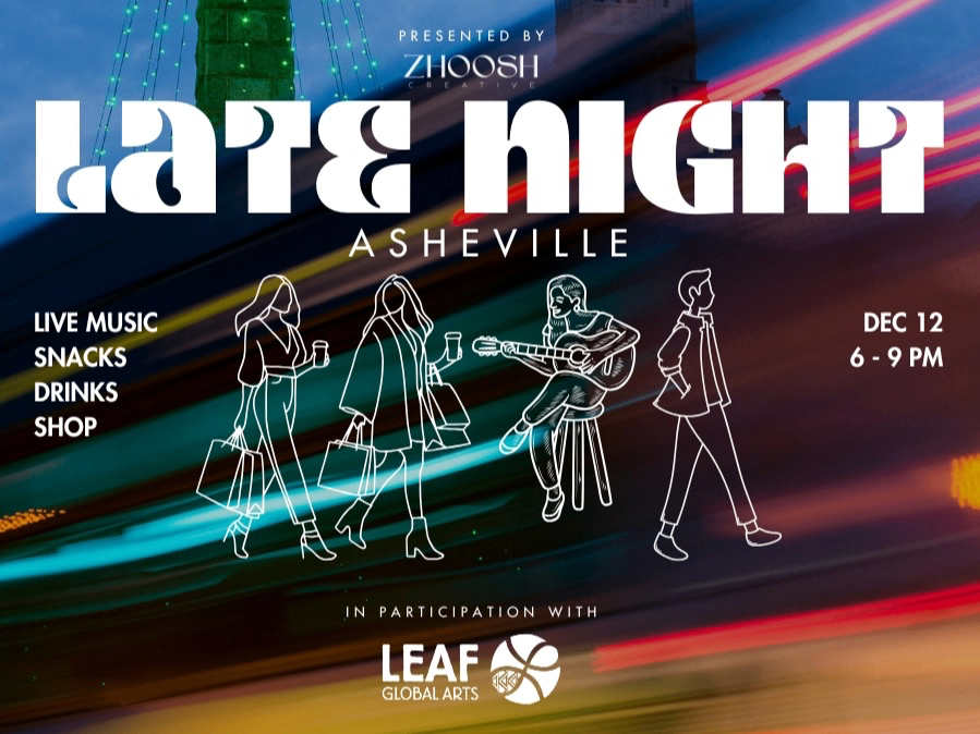 2nd Annual Late Night Asheville is your new yearly tradition to savor the season. Picture downtown glowing with holiday lights, storefronts decked out with winter charm, and the sound of the holidays drifting through the air. Local shops stay open late, welcoming you in with little treats, exclusive offers, and wonderful gift treasures. Musicians and makers add even more warmth to the night as you wander from block to block. It’s a festive, feel-good tradition that celebrates community, creativity, and the magic of Asheville during the holidays. In participation with LEAF Global Arts.