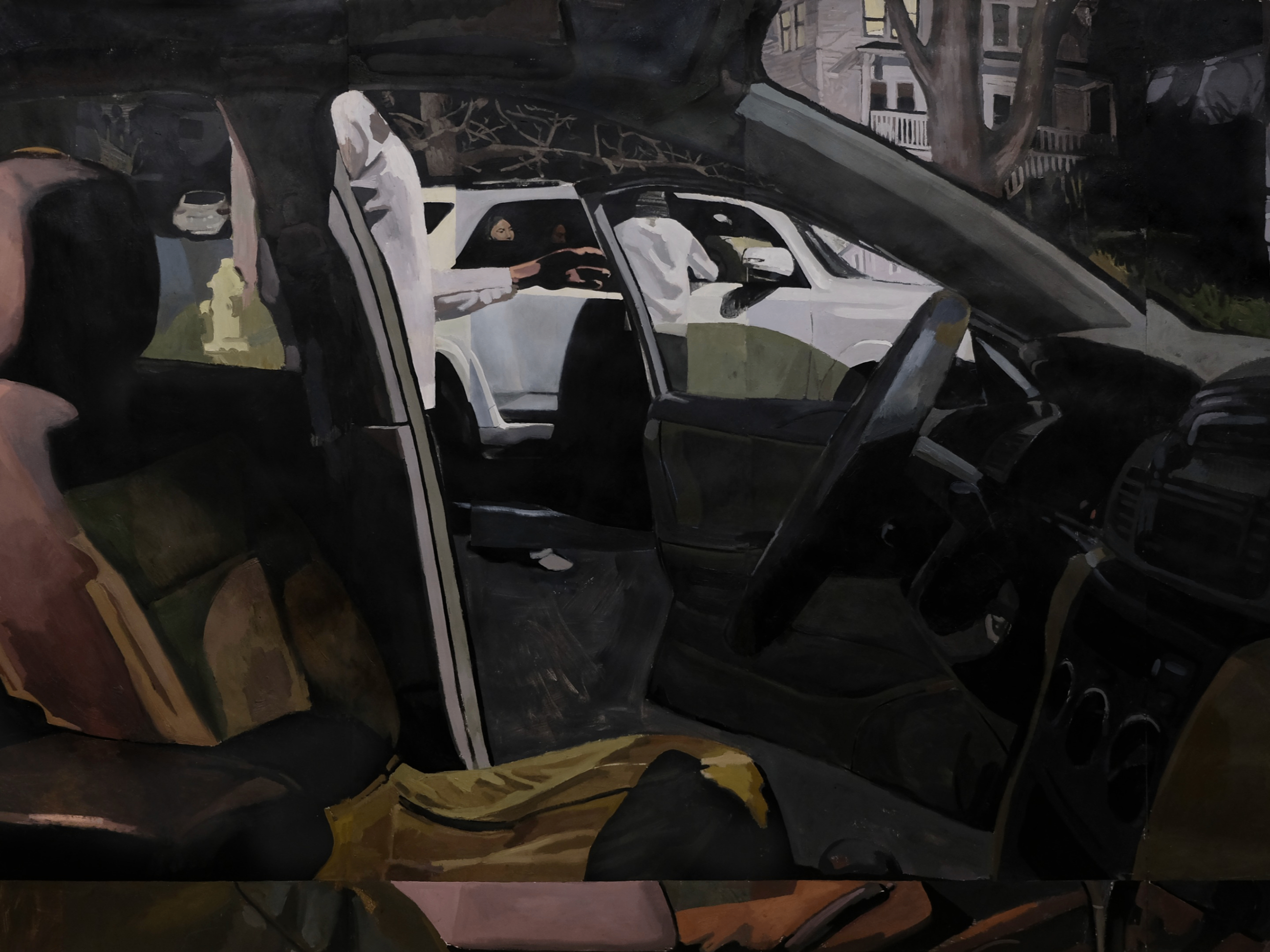 At the center of the performance is a full-length narrative album performed live by musicians Colin Miller, Landon George, Abby Gray, Reuben Akins, and Noah Brackett. As the music progresses, Meyer’s large-scale paintings move across the stage, transforming the theater into shifting environments of bedrooms, cars, and suburban spaces, worlds where sanctuary and surveillance blur.