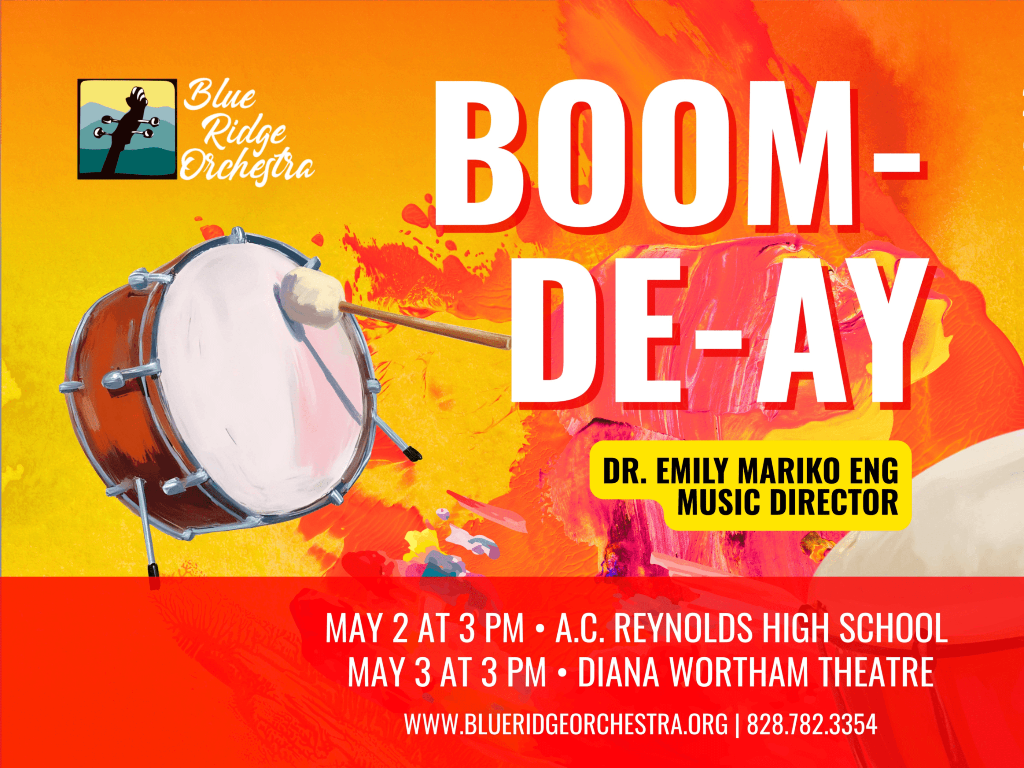 Info:https://blueridgeorchestra.org/boom-de-ay-may-2026, Facebook, Instagram, or call 828-782-3354.