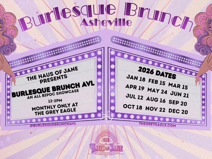 Welcome to the most dazzling brunch experience in Asheville! Producer and award-winning burlesque sensation, Madison Jane brings you WNC’s only all BIPOC burlesque showcase. Each month we celebrate a different lineup of delectable performers for a Sunday extravaganza of tantalizing tastes and titillating performances. The Haus of Jane’s Burlesque Brunch Showcase is a feast for the senses, where laughter and allure collide, creating a brunch event that’s as unforgettable as the Blue Ridge Mountains. Come hungry for glamour and ready to sip, savor, and be seduced by the artistry of burlesque – where every shimmy tells a story, and every wink is an invitation to revel in the magic. Bring cash to tip your performers and prepare for a Sunday like no other!