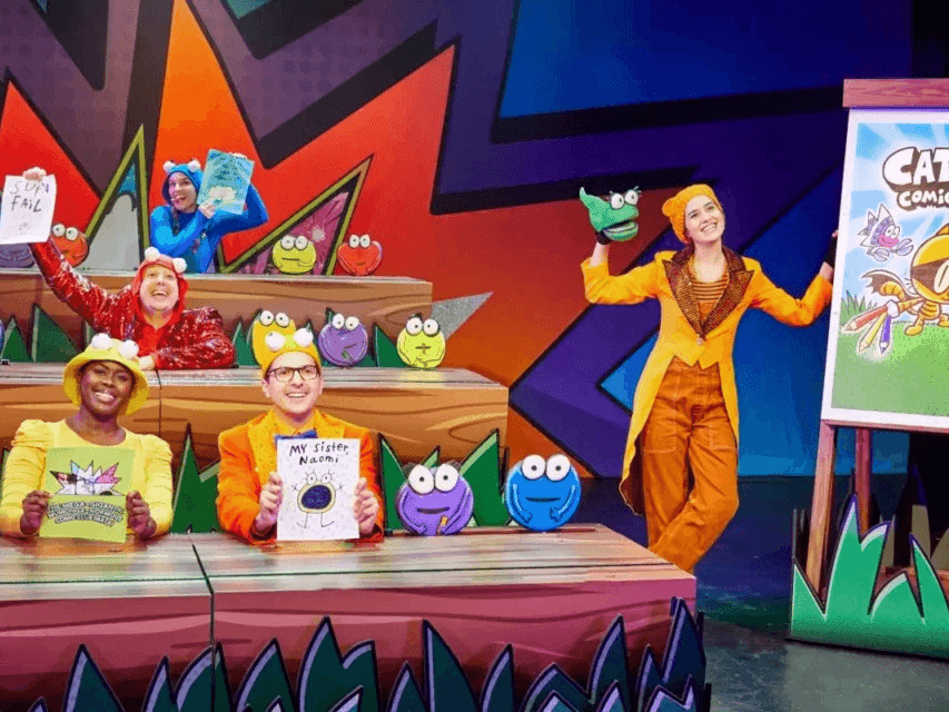 Show length: 60 minutesIn this musical adaptation of Dav Pilkey’s series, Cat Kid and Molly Pollywog help 21 rambunctious baby frogs create their own comics—encouraging creativity, collaboration, and problem-solving through storytelling, imagination, and artistic expression. As the frogs’ constant bickering and outrageous imaginations send their comics comically off the rails, Cat Kid and Molly guide them through the chaos. This madcap musical, brought to you by the team behind Dog Man: The Musical, is a delightful exploration of teamwork, friendship, and the boundless possibilities of creativity.