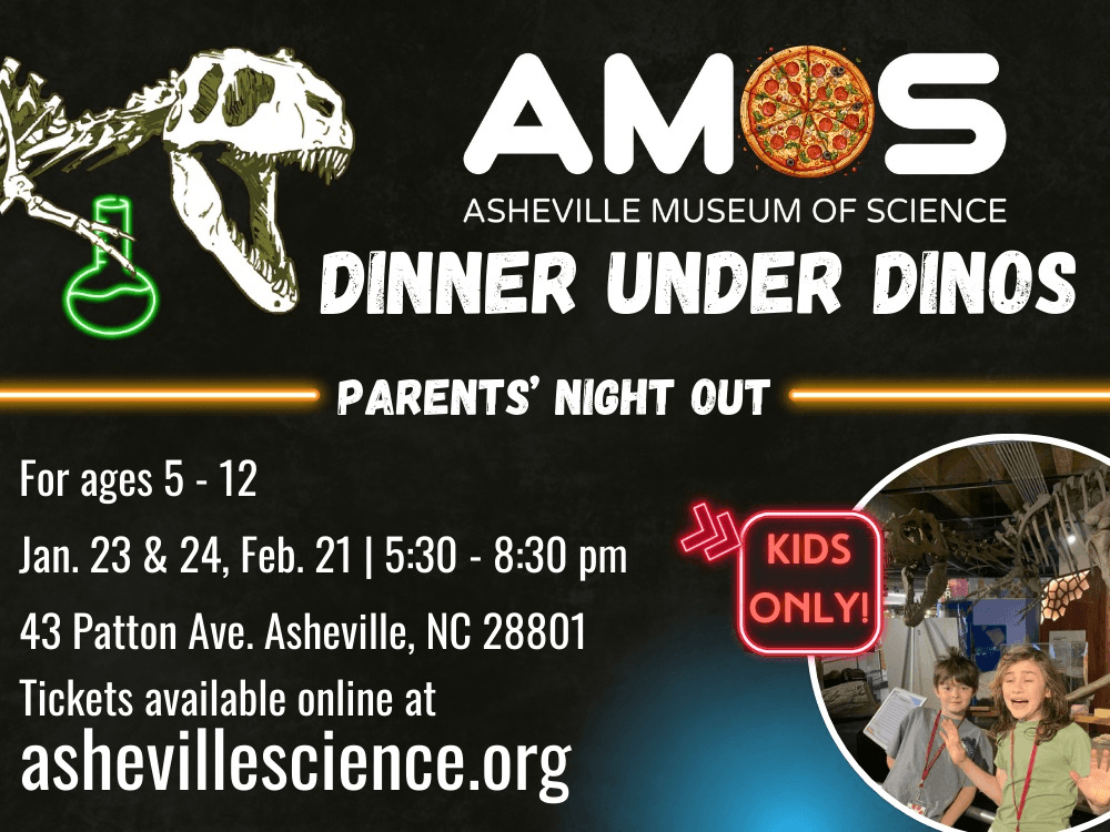 Parents- enjoy a night out downtown during Asheville’s Restaurant Week while treating your kid(s) to a special after-hours event just for them- dinner and a movie at AMOS!