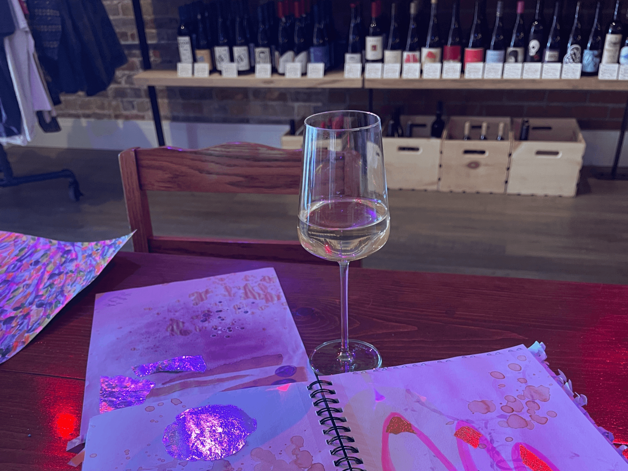 - Wines carefully curated by Bebop Bottle Shop matched to creative moods: bright, deep, sparkling. Sip between mark making or use a splash in your work.