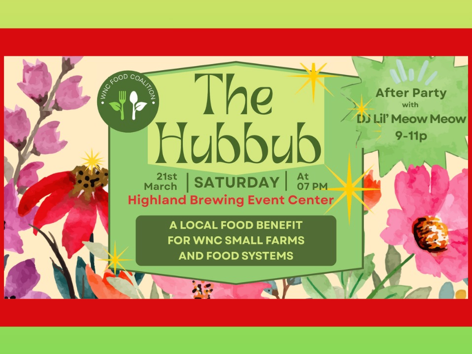 The Hubbub is WNC Food Coalition's inaugural benefit in support of small farms and the food hubs who buy, sell, and stock fresh, local, charitable food across Western North Carolina. Together, we can ease hunger today AND alleviate future hunger by growing a strong and resilient local food system.