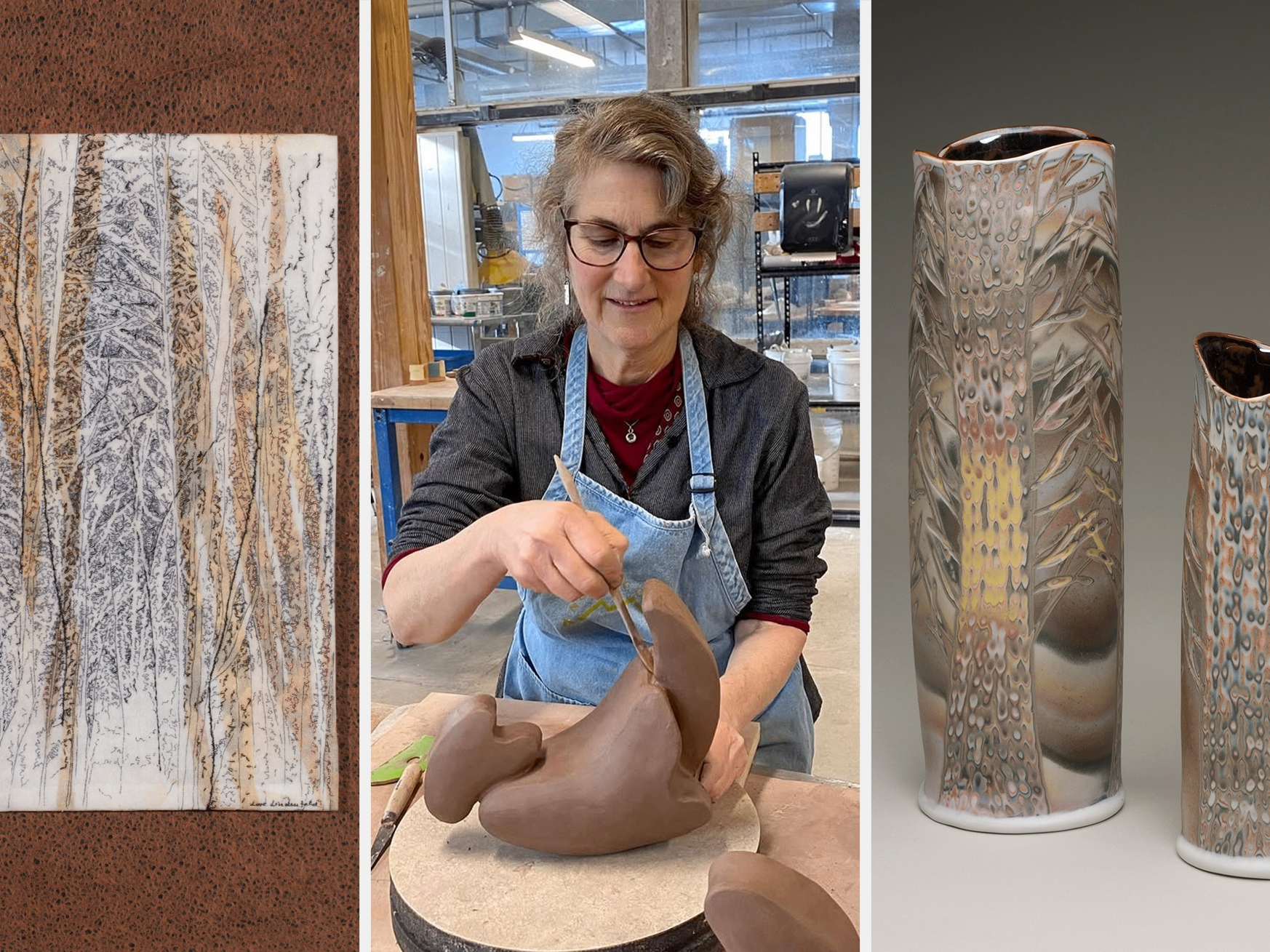 Naomi took her first pottery class at the age of 12, continuing to work in clay in high school. She went on to earn a degree in ceramics from Boston University’s Program in Artisanry, a program designed to prepare students to be professional craftspeople. During her time at B.U. Naomi observed another student who was experimenting with colored clay. Although it was still a few years before she got involved with this technique herself, she began to be intrigued.