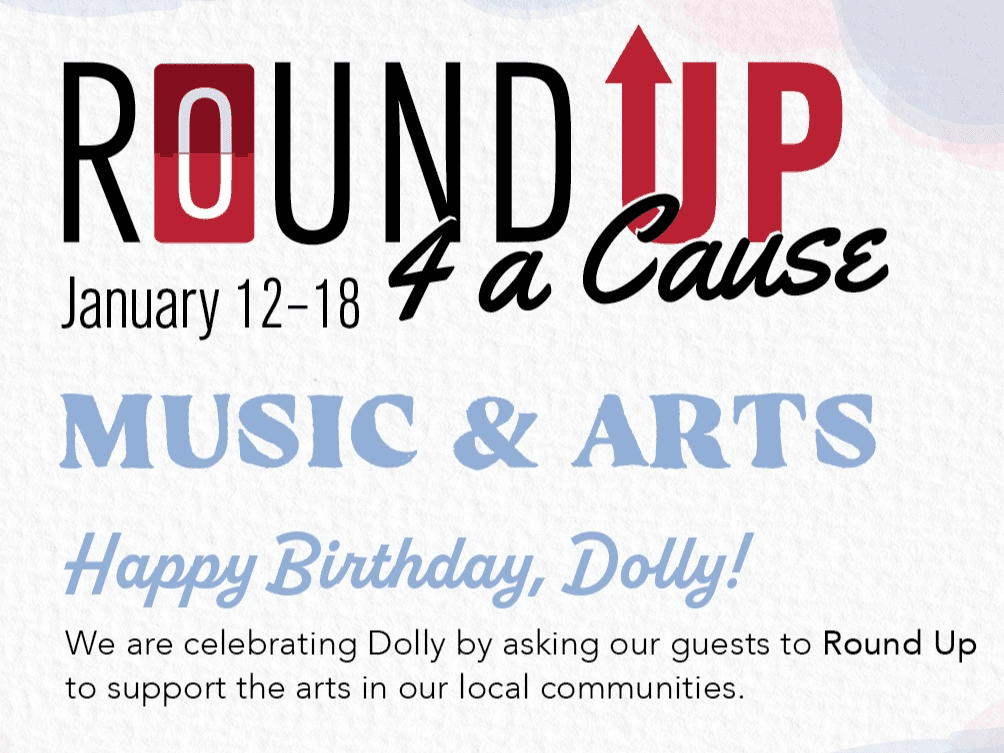 Your choice to RoundUP your purchases to the nearest dollar supports our partnering local groups who enrich and inspire us, tell stories that connect us and deepen our sense of cultural identity, and, perhaps even, enable the next generation’s “Dolly” to make her way to the bigtime.