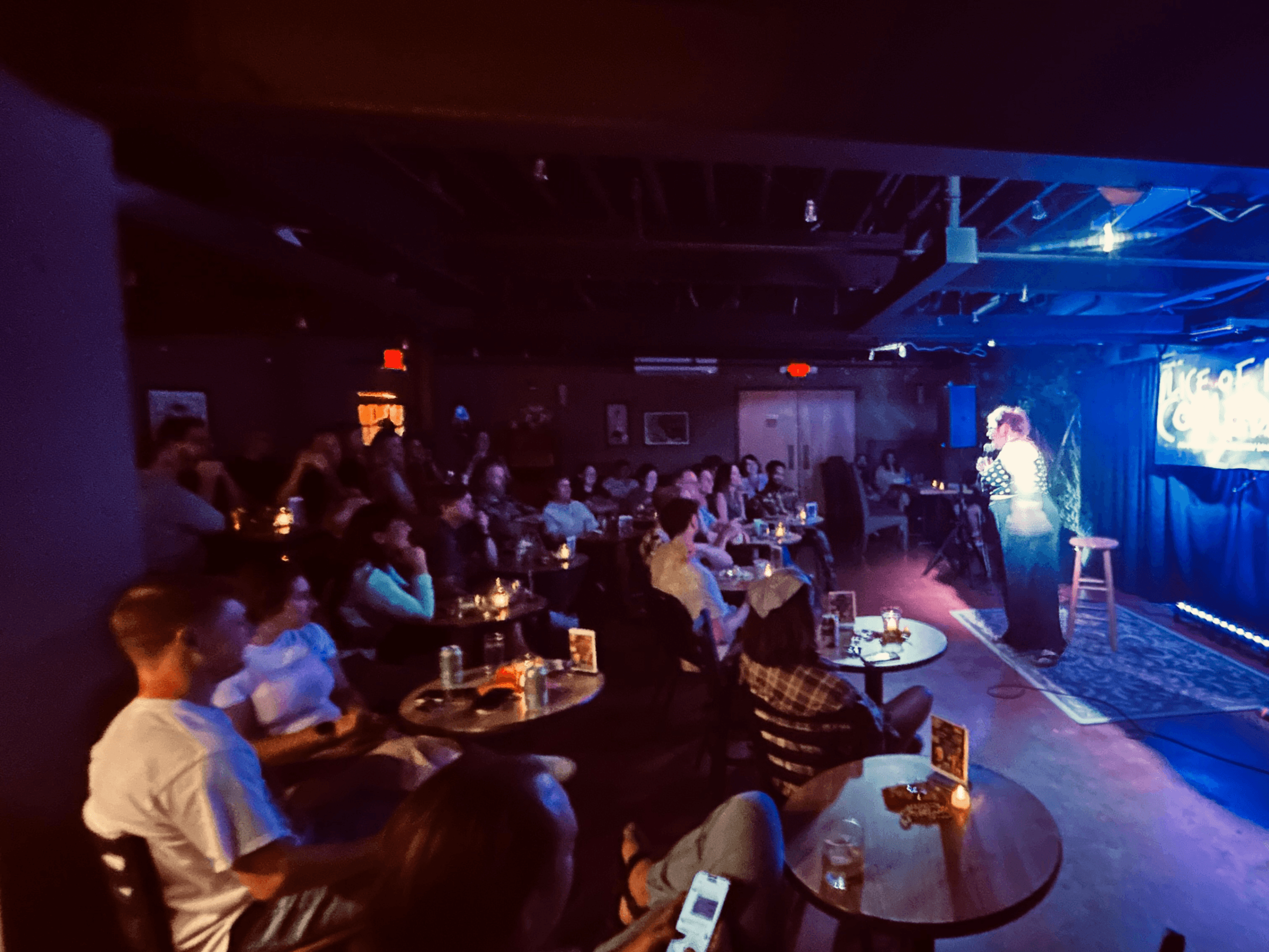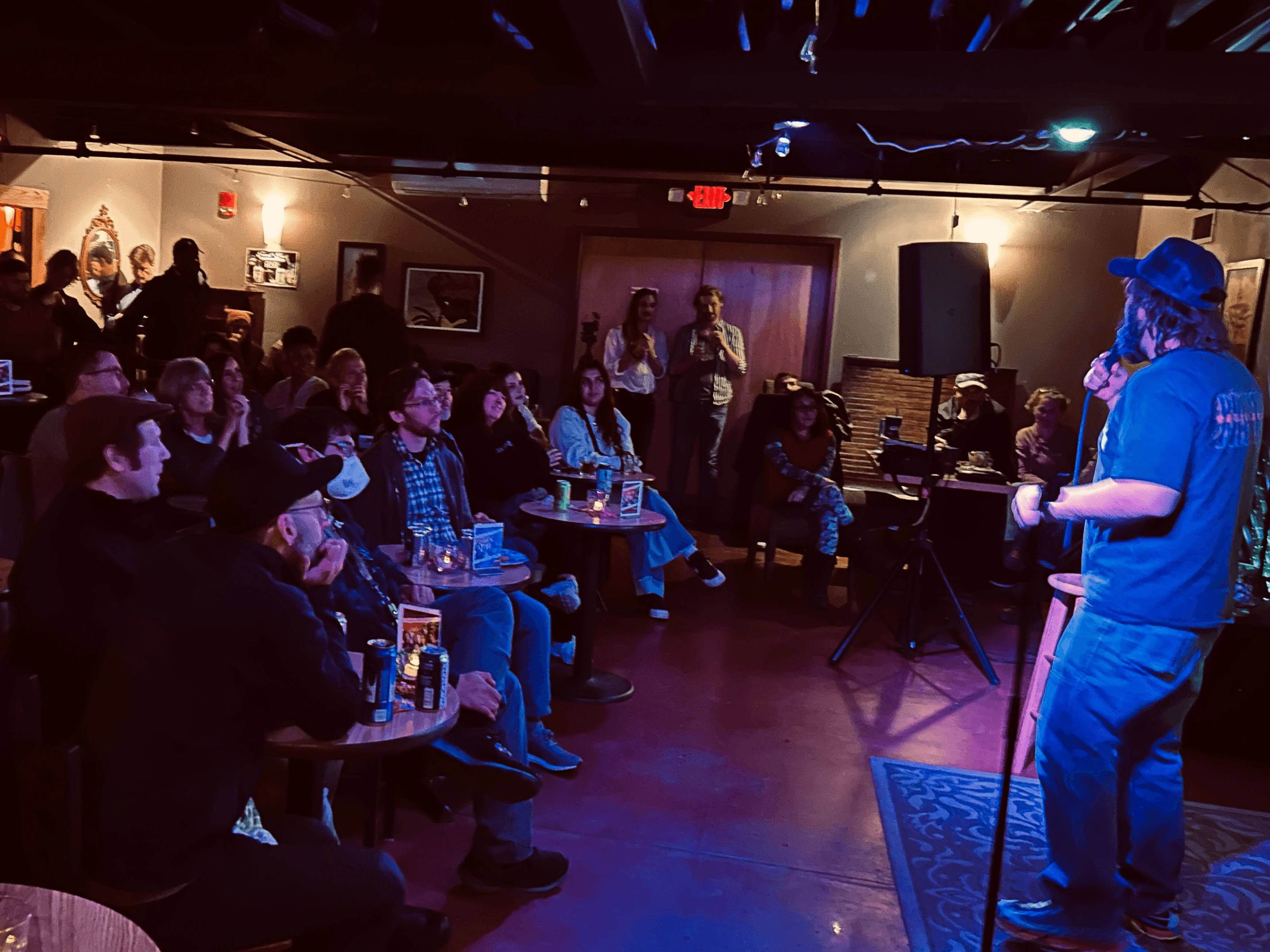 Wednesday April 15, 7:30-9p in The Orange Peel's comedy basement. PULP is a bourbon speakeasy (400+ varieties) located under the iconic stage. No food is served but we do have free snacks while they last and outside food is permitted (no drinks of any kind).
