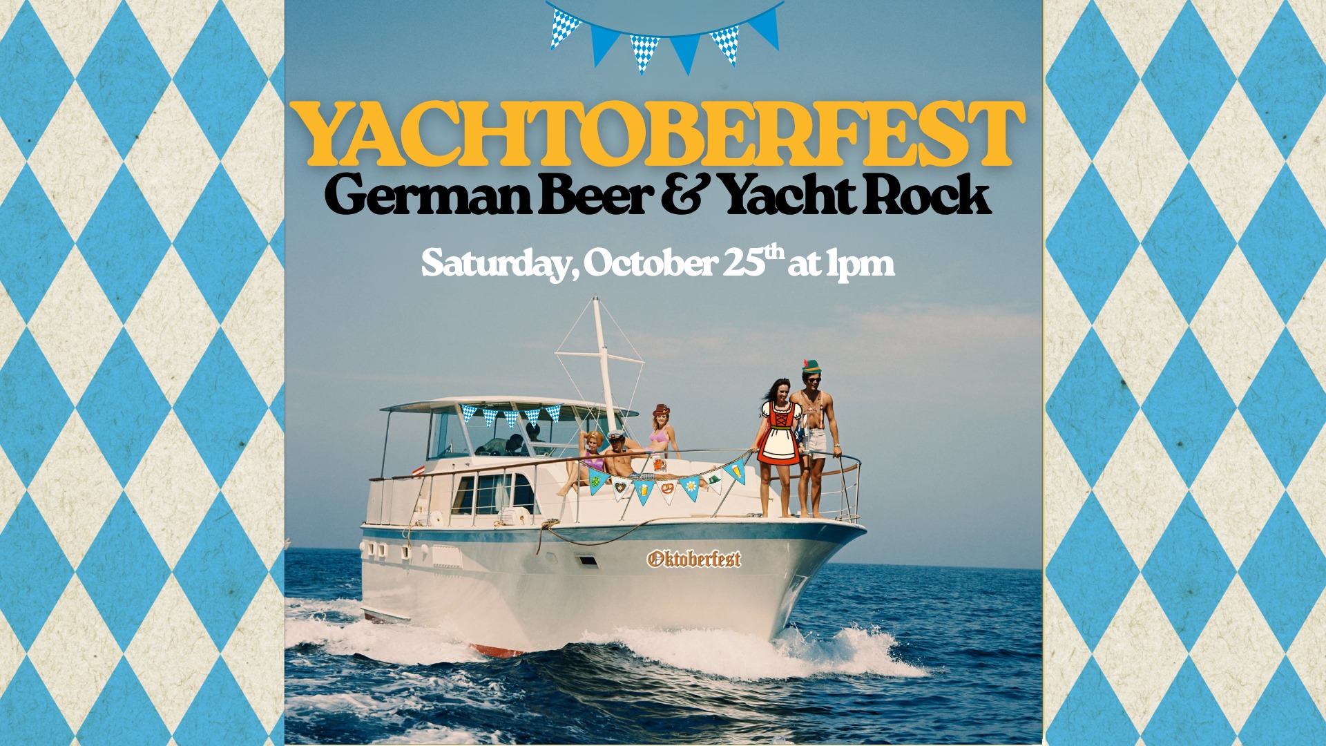 The festivities will kick off at 1 pm and run till 5pm :: We will have a few games to play including a stein holding competition, pretzel toss, and more! :: The first game will start at 2pm so arrive early to sign up! :: Plus, all the yacht rock your heart desires. ::