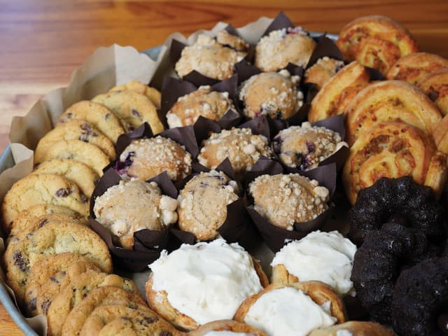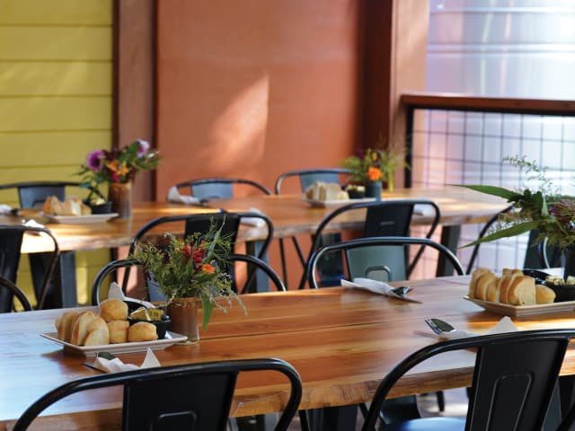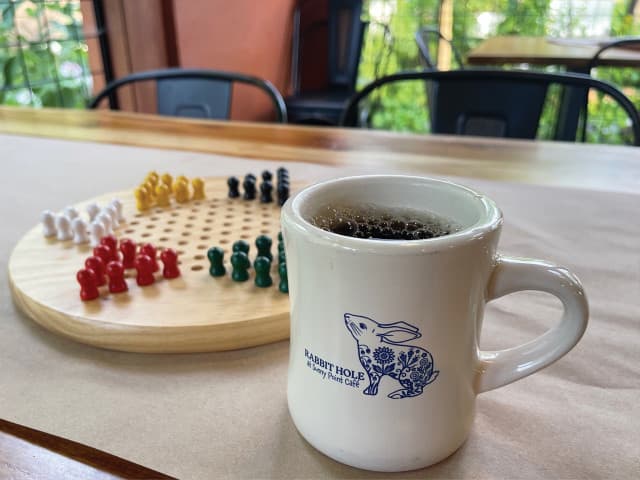 Rabbit Hole is the cozy, counter-service, bakery for popular breakfast/lunch/brunch spot, Sunny Point Cafe. Located immediately across the parking lot from Sunny Point, Rabbit Hole is the perfect spot to grab a baked treat while waiting for your table at the cafe, holding a coffee meeting, or enjoying drinks and snacks while playing games on the deck overlooking the garden. Mimosas, Bloody Marys, a selection of cocktails and NA beverages are available along with coffee drinks. The bakery makes a wide selection of sweet and savory items daily, including gluten-less* and vegan* options.