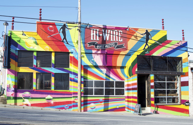 Discover the history and hidden mysteries within Hi-Wire Brewing's South Slope Specialty Brewery and Taproom. Established in the heart of Asheville's South Slope Brewery District in 2013, this original site has grown into a beacon for beer lovers, showcasing an impressive lineup of sour and wild ales, small-batch specialties, and taproom-exclusive brews across 20 unique taps. This cozy, mural-covered brewery and taproom are just up the road from two unique, sister locations: Hi-Wire Brewing Biltmore Village Production Brewery & Taproom and Hi-Wire Brewing RAD Beer Garden in the River Arts District.