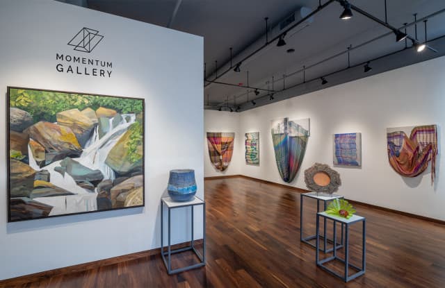 Momentum Gallery, located in downtown Asheville, offers a contemporary and modern program with an emphasis on emerging and mid-career artists. Occupying approximately 15,000 square feet in an easily accessible, street-level space, the gallery's mission is to provide compelling, museum-quality art to our clients. Curated exhibitions featuring exceptional paintings, original prints, and innovative sculpture refresh regularly in the main spaces and smaller adjoining galleries. Momentum Gallery also participates in major art fairs exhibiting work by represented artists.