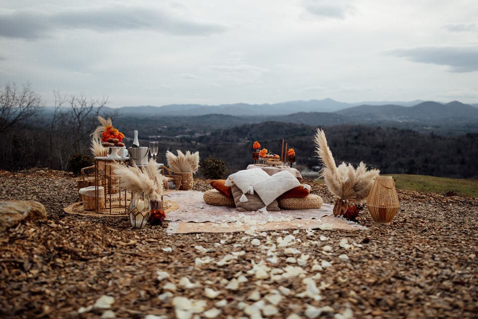 Escape into a world of comfort and style with our luxury picnic services in Asheville, North Carolina. Whether you’re planning a romantic date, a milestone celebration, or an intimate wedding, we specialize in creating unforgettable picnic experiences tailored to your vision. We handle everything from design and setup to cleanup, so all you need to do is arrive and enjoy. Our curated picnic spaces are perfect for a variety of occasions, including proposals, anniversaries, birthdays, elopements, micro weddings, bachelorette parties, and more. Choose from stunning locations such as scenic parks, the breathtaking Blue Ridge Mountains, our partnered wedding venues, or even your own backyard or vacation rental. No matter the setting, we ensure your space is thoughtfully styled and equipped with all the comforts to create a unique memory. We collaborate with Asheville's amazing local food vendors to bring you delicious, high-quality cuisine for your event. Our team takes care of all the heavy lifting—packing, transportation, setup, and breakdown—allowing you to fully relax and savor the moment. From cozy blankets and elegant table settings to personalized touches, we aim to create an experience as beautiful and stress-free as possible. Let us bring your dream picnic to life in Asheville, where the beauty of nature meets the joy of celebration.