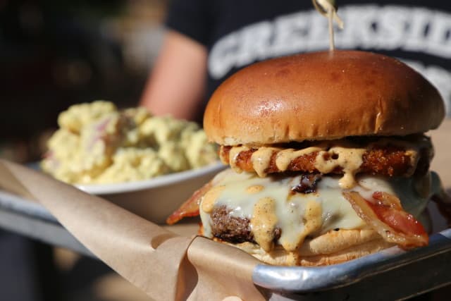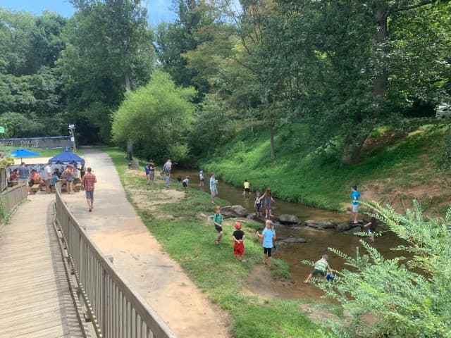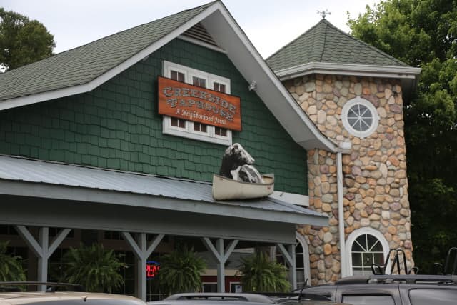 We are a neighborhood family-friendly local joint that specializes in great food & local draft brews! Nestled in the beautiful Haw Creek neighborhood on over 2 acres, a flowing creek provides a peaceful dining experience outside. We source locally and proudly serve Hickory Nut Gap and Creekstone Farms products and specialize in burgers, pizzas, wings and brews! Creekside features over 20 craft brews on draft with lots of local brewers. We also offer one of the largest outdoor seating areas where dogs are welcomed and loved! Our restaurant features a playground area for the kiddos, 10 T.V.'s, 8 inside and 2 outside, that always show the latest games.
