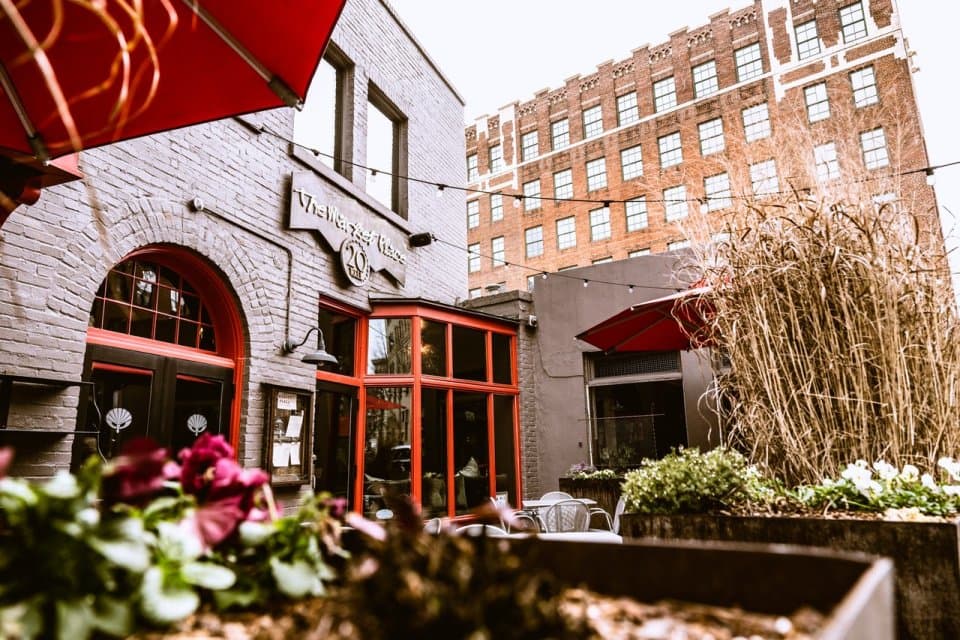- Located in the heart of downtown Asheville, The Market Place Restaurant specializes in handcrafted cuisine from seasonal and local ingredients, many of which come from within a 100 mile radius of Asheville. Bringing you the local harvest since 1979. An Asheville favorite on charming Wall Street in the heart of the city's cultural scene. Dining available in 3 settings: a more classic, butcher block table dining room for both casual and special meals, a relaxed bar and lounge for cocktails and live music, and a relaxed garden patio during fine weather. Service is friendly and professional with an eye towards all the important details. Reservations accepted. Walk-ins welcome.