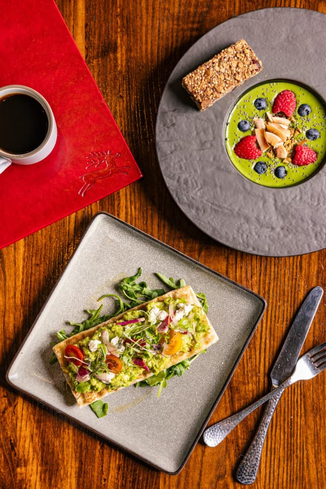 Red Stag Grill offers Asheville's finest gastronomic choices in a casual atmosphere where everyone feels warm, welcome and at ease. Emanating Old-World ambience with hand-hewn beams and tables, walnut wood flooring, and intimate lighting, the restaurant also includes a dramatic lounge for socializing while enjoying brilliantly prepared libations. Red Stag Grill's menu includes a masterful blend of chops, game-forward cuisine, and traditional favorites - all with an emphasis on the freshest local ingredients complemented by an extensive wine list.