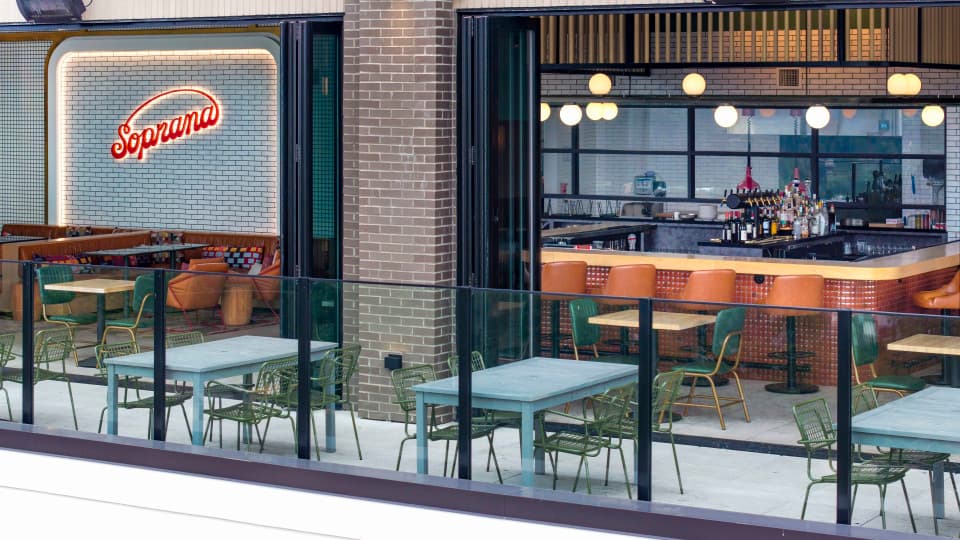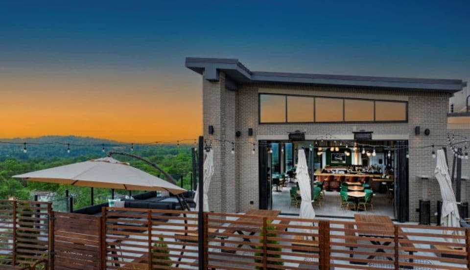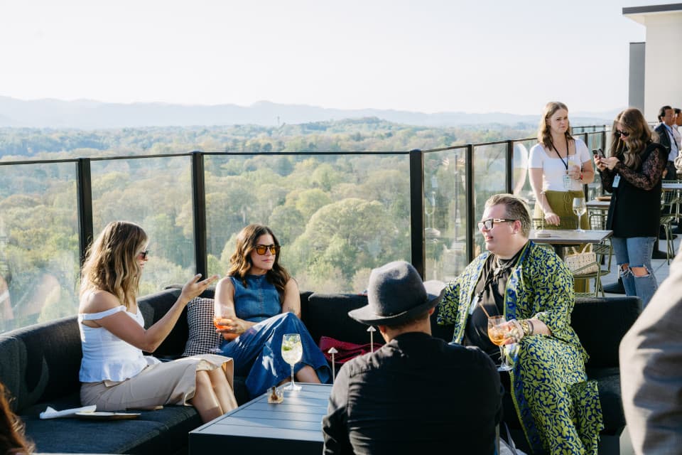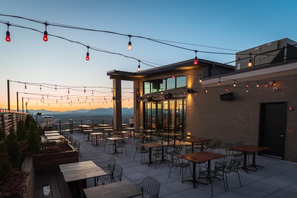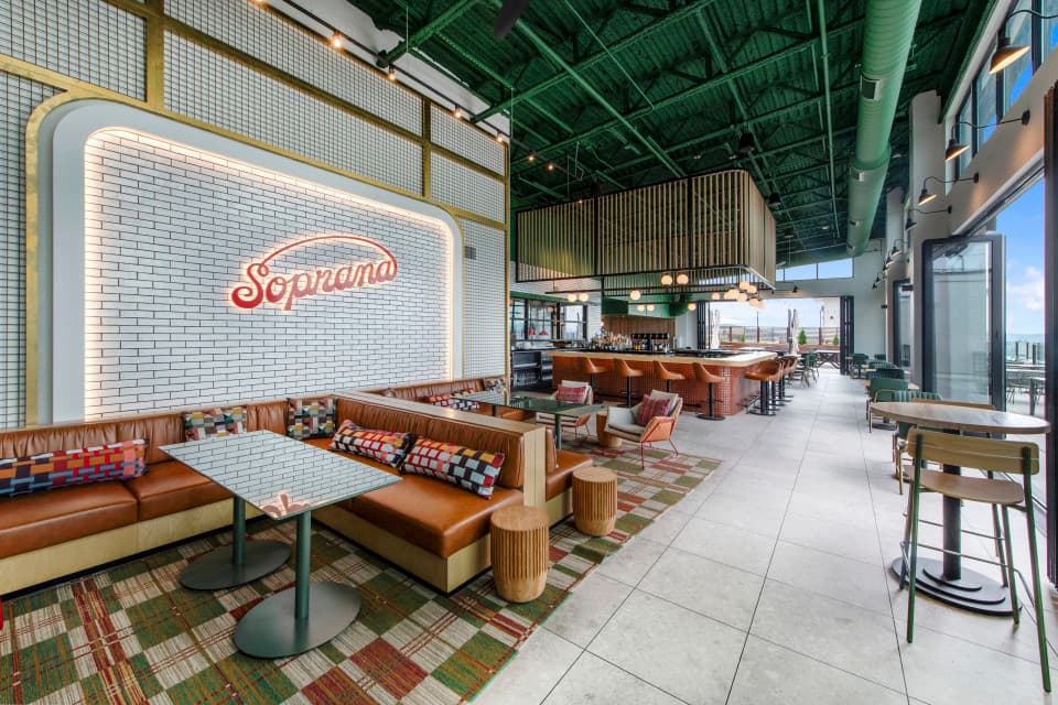 - Soprana is the Appalachia-meets-Alps style rooftop restaurant featuring brick oven pizza and locally sourced ingredients paired with a curation of craft beer, wines and cocktails. Perched atop the Embassy Suites in downtown Asheville, guests enjoy sweeping, unobstructed views of the Blue Ridge Mountains in a causal atmosphere worth visiting time and time again. It’s an approachable hangout spot for locals and an inventive, only-in-Asheville setting for visitors.