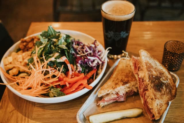 The upstairs portion of the historic building hosts a full restaurant featuring elevated pub gastronomy, 28 of our beer offerings, wine, classic as well as creative cocktails. Complete with a dog friendly patio and outdoor dining at street level guests are sure to find the brewery experience suited to them.
