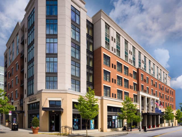 Close to the Asheville Regional Airport, near I-26, is the Hilton Asheville Biltmore Park, an environmentally friendly, LEED Silver-certified hotel. Minutes from the Biltmore Estate and Historic Biltmore Village, the Hilton Asheville Biltmore Park is located in the heart of Biltmore Park Town Square, where dining, shopping, and entertainment are just steps from the hotel’s door. This modern 165-room Hilton features spacious executive suites, an indoor pool, EV charging stations, free parking, on-property signature restaurant Fork Lore, a state-of-the-art fitness center, and Sensibilities Spa, a full-service destination spa. Beyond the hotel's focus on comfort is its emphasis on sustainability. The Hilton Asheville Biltmore Park is one of the first in the nation to utilize a large-scale solar water heating system. The hot-water system, which will eliminate sixty tons of carbon dioxide yearly, is one of the many green measures the hotel is taking to promote a healthy environment, reduce energy costs, and gain Leadership in Energy and Environmental Design certification. This hotel property has pet friendly rooms so you can bring your furry friend along.