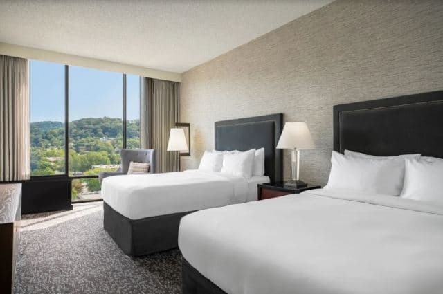 Explore the Blue Ridge and the Great Smoky Mountains when you visit Renaissance Asheville Downtown Hotel. Just steps from downtown, our hotel features the sights and sounds of a major city, combined with views of stunning mountain ranges. Upon arrival, you’ll be met with a modern guest room with a sophisticated design. Enjoy a bite to eat in the Writer’s Bistro, a casual-chic restaurant inspired by North Carolina’s rich literary history. All of Asheville is waiting to meet you; with the finest shopping and dining located just steps from our front door. After your fun-filled day, retire to a luxurious bed with soft linens and enjoy a restful evening with us. If you need to know where to go around town, one of our front desk Navigators will help you on your journey to discover the best activities for you.