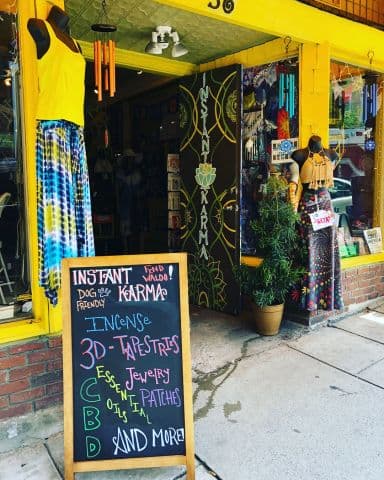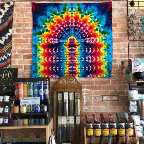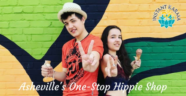 Take a step back to the 60's & 70's at Instant Karma Asheville. When you walk in you will be greeted by some of the friendliest staff here in town! You have to try our 3D glasses for our 3D tapestries (including glow-in-the-dark), they are insane! We carry everything from incense, crystals, hippie clothes, CBD, Delta-8, and much more! Don't miss the humorous postcards, stickers, buttons & patches found on our walls and the hilarious magnets found on our refrigerator. We also carry local made products like oils, ritual paper, candles, rings, earrings, and mugs. Stop in and feel free to stroll around, browse, and ask our staff any questions you might have about our hippie shop or more!