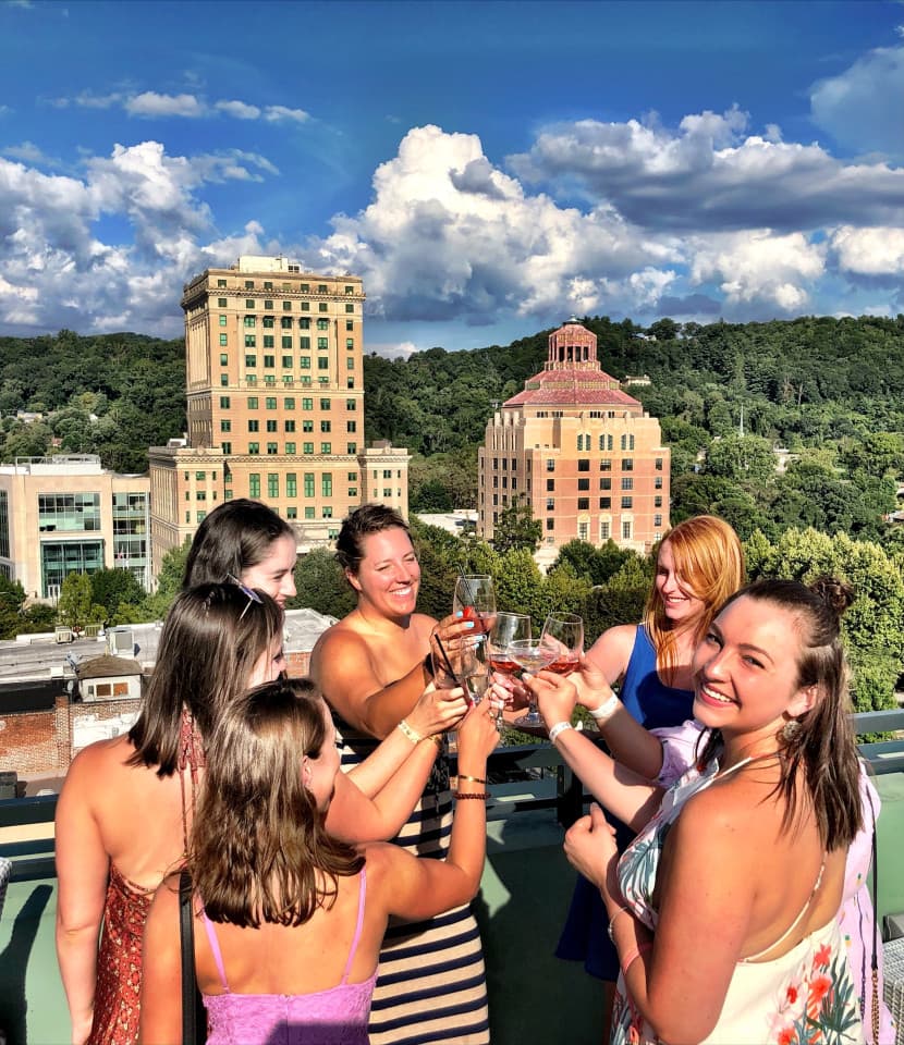 You'll experience Asheville's scenic beauty and historic landmarks, enjoy sample cocktails or mocktails (0% alcohol) at three rooftop bars, have reserved seating, and a local expert guide sharing Asheville's fascinating city history as we stroll the city streets to each location, and look out from the highest parts of the city. Full food menus available at each stop.