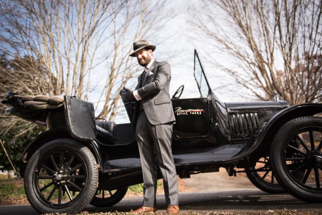 Our owner, Heath Towson is an Asheville Native - born and raised in the "Land of the Sky." Driven by a love for history of the city and automobiles, he decided to create Mountaineer Motor Tours. He wanted to share Asheville by touring folks around in a vehicle that truly evoked the Golden Age of Asheville - the 1920s. Our tours use a 1923 Ford Model T, who goes by the name "Mabeline". Tours range from 1.5 to 2 hours, touring downtown Asheville and the Grove Park neighborhood. Highlights of the tour include tourism history, architecture and cultural change in Asheville. Each rider will leave with a special Mountaineer Motor Tours Souvenir!