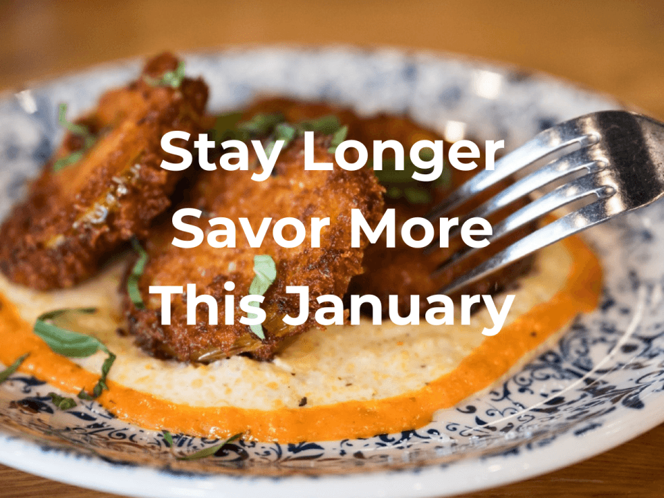 Valid for January 2026 stays. Subject to availability. Limit one package per reservation. Direct bookings only. No cash value. Gift cards subject to Tupelo Honey terms and conditions.