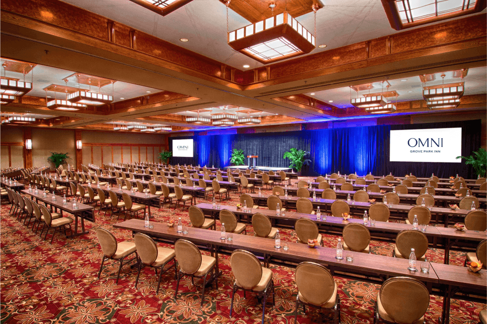 The Omni Grove Park Inn & Spa features more than 55,000 square feet of versatile event, banquet, convention and meeting space. This includes an 18,000-square-foot Grand Ballroom, an 8,800-square-foot Heritage Ballroom and the 3,200 square-foot Seely Pavilion. Plus, 30 meeting rooms, suites as well as pre-function areas and stunning outdoor terraces, patios and balconies make it the perfect place for your next meeting or gala.