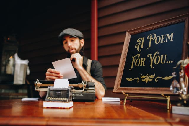 - Coming with the southern charm and romance of Ryan Gosling in "The Notebook", and the creative playfulness of Asheville, I write to hopefully entice you to consider hiring me and my performance for any and all of your future events. I go by Ryan Ashley The Poet and my performance is simple but leaves a lasting impression. I set up a vintage typewriter, dress in vintage poet apparel, I have a sign that reads "A Poem For You" and with every inquiring guest request, I create an Original custom poem typed right there on the spot on a beautiful stationary piece of paper (potentially with the bride/grooms name on it or company logo) for all to have and to keep as a cherished memory thus elevating their experience as well as setting in stone what a wonderfully charming and beautiful event they attended.